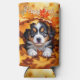 A cute puppy dog Autumn themed can cooler. A sweet little puppy dog playing in a pile of Autumn leaves. He's peeking out adorably as he hides in the pile of leaves.