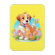 A magnet with a picture of a cute puppy sitting amongst the flowers. He looks very happy to be surrounded by flowers and butterflies.The perfect gift to give those who love puppy dogs. Contains generative content.