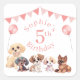 Cute Puppy Dog Pink 5th Birthday Square Sticker