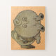The cute little brown pug on this childrens puzzle is an original colour pencil drawing. The little pug is play bowing and being a playful puppy. The fun pug illustration is an original design. The cute dog character is set against a soft peach background and is a large piece jigsaw that's great for keeping the children entertained.