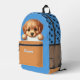 Cute Puppy Eating Homework Blue and Brown Printed Backpack
