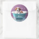 Cute puppy in a bathtub with soap bubbles classic round sticker