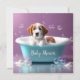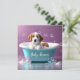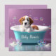 Cute puppy in a bathtub with soap bubbles invitation