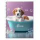 Cute puppy in a bathtub with soap bubbles notebook