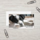 This business card front features a replaceable photo of cute black and white puppy laying down. Personalize the template, remove any text or use the edit design tool to select a font style, size, and colour you prefer. Keep or replace the puppy photo with a horizontal image to meet the need of promoting your business. Use the QR code to send potential customers to referrals, reviews, photos or other business related link. Photo by Patricia AZ Phillips.