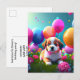 Cute puppy with balloons - birthday invitation postcard