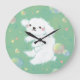 Cute Puppy with Bubbles and Flowers Large Clock