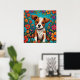 Cute Puppy with Whimsical Folk Art Flowers Poster