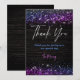 Cute purple black faux glitter thank you card