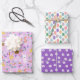 Cute Purple Bunny Chickens Mixed Easter Patterns Wrapping Paper Sheet