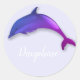 Cute purple dolphin - add a name now . It comes in light lavender colour . You can change the background now . Round stickers for dolphin lovers / for anyone whose name is related to dolphins /sea /summer . Like Dauphine / Delphine /Aqualine . From the store of lumirala .