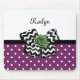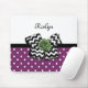 Cute Purple Dots Green Rose Chevron Bow With Name Mouse Pad