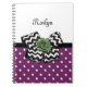 Cute Purple Dots Green Rose Chevron Bow With Name Notebook