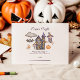 This sweet Halloween baby shower design features hand-painted purple witches, pumpkins, and a cozy haunted house. Perfect for a fall celebration with a whimsical, gentle aesthetic. A lovely choice for parents who love soft Halloween colours and playful cottagecore charm.