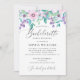 Cute watercolor floral Bachelorette party invitation with elegant script in pastel purple pink green colours.