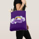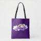 Beautiful customizable purple tote bag which features a cute cheerful rainbow with fun white clouds on a pretty violet background. Personalize with a name for a great LGBT gift.