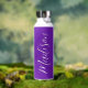 A cute purple water bottle with white monogram for a girl or guy who loves simple, handwritten gifts. Beautiful cursive script down the side of your bottle spelling out your name.