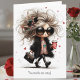 Send a greeting that’s as bold and fabulous as they are! This whimsical Valentine’s Day card features a chic, "quirky girl" illustration sporting oversized sunglasses, a glamorous faux-fur coat, and a messy-chic hairstyle that says "I need my coffee." Clutching a festive red coffee cup and a designer-style handbag, she’s surrounded by fluttering red hearts and a bit of artistic splatter for a modern, hand-drawn feel. A customizable "You Mocha Me Crazy!" pun/greeting on front and customizable "Happy Valentine's Day" greeting on inside panel with space for signature and personal note.