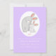 Cute rabbit mother and bunny lavender baby girl shower invitation. It features a rabbit mother with her baby bunny and two blush pink hearts in a white oval frame. Your text is on lavender purple. The back includes a purple polka dot pattern.
