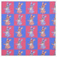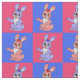 Kawaii Cute Pink and Blue Bunny Rabbit Chequered Surface Pattern Fabric.