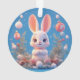 Adorable cartoon bunny surrounded by colourful holiday decorations, creating a cheerful and whimsical ambiance. Perfect for themes of festivity, decoration, and joy.