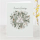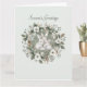 Four cute rabbits cuddle together surrounded by a beautiful subtle floral winter wreath.