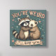 This adorable design features a sweet raccoon and ferret locked in a warm embrace, surrounded by soft hearts and twinkling stars. Above them, playful lettering reads “You’re Weird” in charming vintage-style type, while a hand-drawn banner beneath says “I’ll keep you,” adding a quirky touch to the heartfelt scene. The earthy tones and soft pastel accents create a cozy, cottagecore vibe, perfect for those who love a mix of humour and tenderness in their décor or style. The illustration’s whimsical detail and warm, affectionate mood make it a delightful way to celebrate friendships and relationships that are wonderfully unique. AI generated artwork.