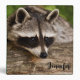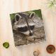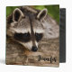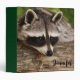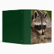 A binder with a photograph of a cute and curious raccoon resting his face on a wooden log. Adorable.