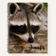 Spiral notebook with a photograph of a cute and curious raccoon resting his face on a wooden log. Adorable.