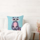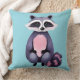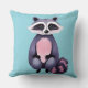 A cartoon raccoon with large, expressive eyes and fluffy fur is depicted sitting on its hind legs. The fur features shades of grey and pink, creating a playful and whimsical look