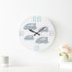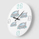 Cute Race Car Blue Drawing Boys Nursery Wall Clock. Cute drawing with 4 race cars in blue, grey and white colours and big numbers.