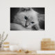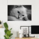 A photo of a ragdoll kitten in black and white with a splash of colour
