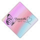 This is a cute graduation cap topper with a rainbow background and butterfly detail that go well with the customizable text that can be changed to your personal specification.