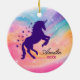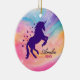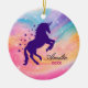 Cute rainbow girly unicorn holiday keepsake ceramic ornament