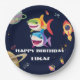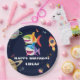 Cute rainbow Shark Galaxy Rocket birthday party Paper Plate