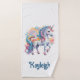 Une jolie licorne avec crinière et queue de couleur arc-en-ciel est peinte avec des fleurs sur cette adorable serviette de bain pour une petite fille. . . ou petit garçon qui aime les licornes et les arcs-en-ciel.
