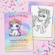 Get ready for a magical 9th birthday party with this whimsical rainbow unicorn-themed invitation! Featuring a pastel chibi unicorn wearing a flower crown and surrounded by sparkling details, it’s the perfect way to invite friends to a bright and colourful celebration. A big rainbow-coloured "9" makes the card pop, plus a bonus unicorn colouring page on the back adds an extra touch of fun!
