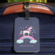 A cute personalized girls pink and purple rainbow unicorn luggage tag. Personalize it for your little girl's luggage. Makes a fun surprise when you give as a gift for an upcoming vacation. Designed for you by Blackberry Boulevard.