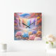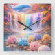 A magical rainbow waterfall flows into a sparkling river while a dreamy sky whale floats above, surrounded by adorable fluffy creatures in soft pastel colors. This enchanting wall clock design brings joy, imagination, and warmth into any children’s space.