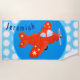 Cute red airplane flying cartoon illustration beach towel