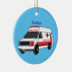 This happy red ambulance is on the way to help! Drawn in fun cartoon style.