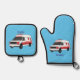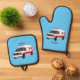 Cute red ambulance van cartoon oven mitt & pot holder set