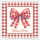 Cute Red and Cream Gingham Bow Square Sticker