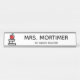 This cute long name plate for teachers features an illustration of some books with a red apple atop and to the left is a name and grade for you to personalize. Makes a great gift for teachers! Designed by world renowned artist Tim Coffey.