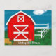Bright and colourful drawings of a Red Barn with customizable Living the Dream typography. In the back greetings to your friends and family who don't see you very often with a humourous recap of your living the dream schedule and reason why you have not been socializing as much...