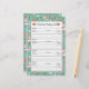 A Christmas baking list to keep all of your baked treats in order by recipient and you can keep track of whether it was baked, wrapped, and/or delivered. This cute design has a brightly coloured pattern of sugar cookie snowmen, peppermints, and trees.