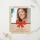 Sweet and charming Cute Bow Graduation Postcard featuring a whimsical polka dot red bow and faux paper texture background. Perfect for announcing your graduate news and inviting friends and family to celebrate the accomplishment. Easy to customize, simply add a photo and your party details in the text fields provided.