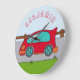 Cute Red Car Road Boy Name Nursery Large Clock