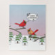 Cute Red Cardinal Singing Merry Christmas Jigsaw Puzzle