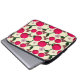 The sleeve is made of nice feeling material and seems very durable. I'm not sure how easy it'll be to clean, but the construction seems sound and the fabric is quick thick. I also like the double zipper. The printing is lovely and appears durable. The white on black contrast is nice, and the design very elegant.